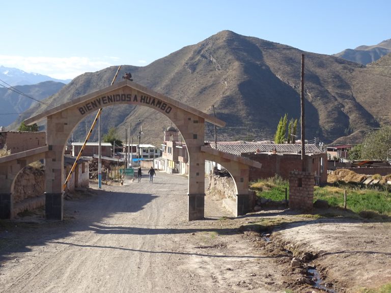 fahren wir auf 3333m Höhe durch den kleinen Ort Huambo.